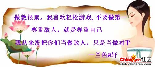 兰色:做教很累,我喜欢轻松游戏,不要做第一,尊重敌人,就是尊重自己,我从来没把你们当做敌人,只是当做对手