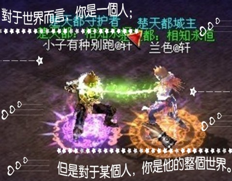 每到节假日,相知永恒也有着如现实一样的亲情活动,大家在游戏里团聚一起,相互鼓励祝贺。更让人感动的是,去年中秋节,兰姐给帮会小号发月饼,每人一个大小丹,2个月饼,一个苹果。还有,相知定期和不定期地举办富有特色的个人演唱会,这里可谓是人才辈出,小深子、果果、莲花仙子、柳州一刀等,唱起歌来并不比明星们逊色。