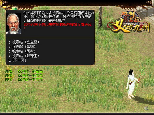 收集齐七种宠物的祝寿帖便可以在洛阳城刀剑活动司仪(120,130)处换取一个七星聚义护符!同时,使用祝寿帖还能获得大量经验值奖励!