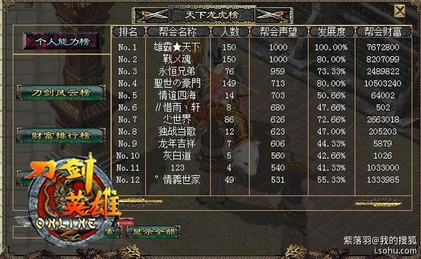 正如豪门神话所说,很多来自老区的玩家纷纷加入盛世豪门,建帮的第二天帮会人数就已经达到上限。帮内几个骨干只好退帮又建立了一个分帮,然而没两天分帮竟也人满。发展度在霸气家族的雄霸天下帮会之下位于排行第三。帮会财产居于全区首位——