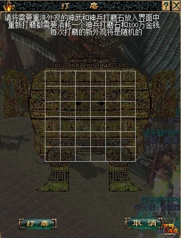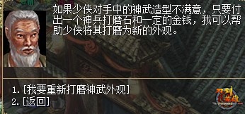 21日测试服1.9016版本有个花钱的功能,洗神武外观!说起来好像挺坑爹滴,又要勾引玩家花钱了!哈哈!1888元宝+100万金钱,好多钱呢?据说目前只放出3种新外观,不能预览,新外观随机获得,这不坑爹嘛!玩家花钱不能享受到服务,超级不爽,希望这里能改动!今晚,某大叔在群发了些仙新