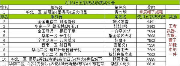 第四名再次出现巧合,来自于“全国网通一横扫千军”的“━☆夺帅づ”也是新晋级榜单,服务器名次与23日榜单排名相同。