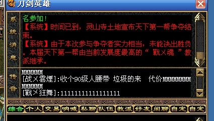 喇叭中,‘战魂’帮会的超级打手‘见到我请回城’公开说“永恒、逍遥天下、逆天行、云岚宗、冥界、你们合帮吧,不然矿2没戏。”